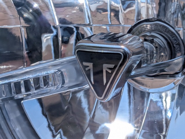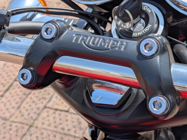 TRIUMPHのロゴが際立っている魅力の一台! |