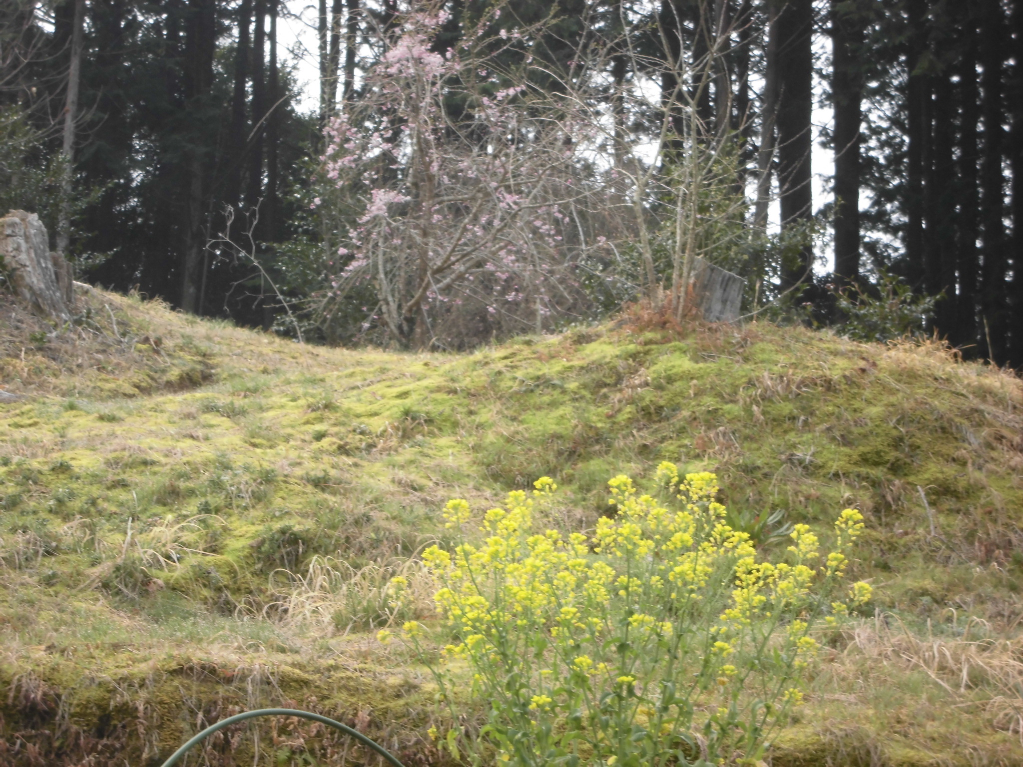 春ですね〜、枝垂桜2分咲きと菜の花