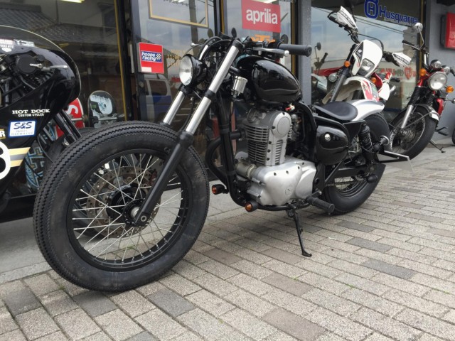 距離の少ない程度のいいエストレヤ250ベースで新規で製作致しました。ワンオフカスタム多数。タンクのカラーは納車時に選んでいただけます。ホイール、タイヤ、マフラー、ハンドル、シート、サスペンション、タンク、保安部品、フェンダーなど多数の新品部品にて製作。エンジンケースもサンドブラストでレストア済み。250アメリカン、ボバーカスタムの完成車です。