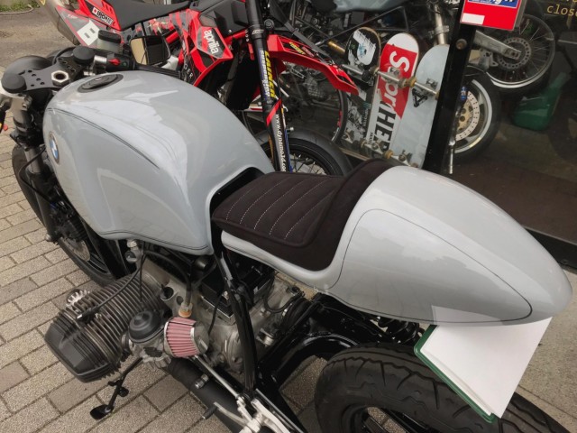 BMW R100RS セミレストア車。カスタムベース車にも最適です。新品パーツを多数使用して一通り綺麗に仕上げています。ホイール前後、フレーム(不要なステーを切断してスムージング)、フロントフォーク、スイングアーム、デフケース、エンジンカバー、ブレーキローターインナー、ほか小物パーツなどパウダーコート、セラコート、ウレタン塗装で仕上げました。フロントサスペンションはローダウン、OH。エンジンはタペット調整、ミッション、クラッチ、クラッチレリーズ、デフ、スイングアーム類の整備、シール交換。発電系の整備済み。小型リチウムバッテリー、レギュレーター、リレー類交換。キャブレターOH、社外エアクリーナー、セッティング。ブレーキマスターOH、社外ホースに交換、ブレーキキャリパーOH。社外セパハンに交換、モトガジェットバーエンドウインカー、小型ヘッドライト、ライトステー交換。社外バックステップに交換、タイヤ前後ハイグリップバイアスK300GPに交換などカスタム多数。 社外マフラー、シングルシートカウル(アルカンターラシート)と専用ワンオフシートレール、モトガジェット小型メーターに交換。