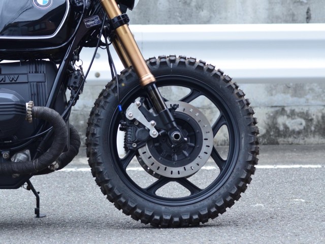 全体的に細かく手を加えてレストア、カスタムしています。塗装は下処理からこだわりサンドブラストで剥離後にフレーム、ホイールはパウダーコート。エンジン、ミッション、ギヤボックス、フォークボトムなどはセラコート。他、スイングアームや細かいパーツもガンコートやウレタン塗装にて適材適所のリペイントを施工。バラバラに分解する際に、ある程度の消耗品を交換しながら製作。他車種の倒立フォークを加工して取り付けして、しっかりした足回りになってます。このままで車検が通る状態で公認車検を取得して販売しています。