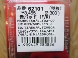 24369 ブレーキパッド赤パッド★NSR50/XR50/Ninja250/スカブ他 |
