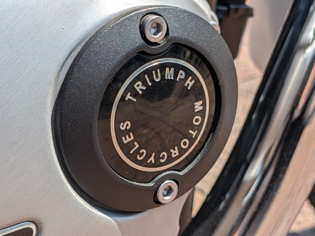 TRIUMPHのロゴが際立っている魅力の一台! |