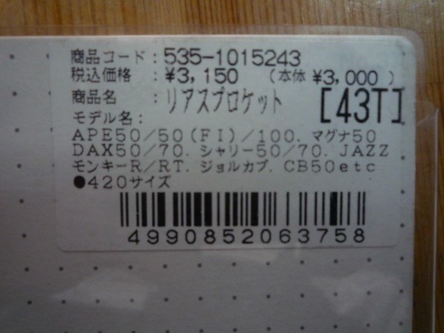 【新品】 KITACO リアスプロケット 43丁 |