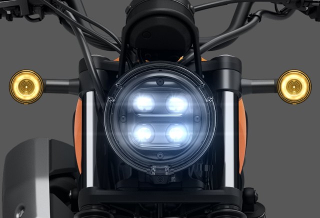 ヘッドライトは機能美を追求したユニークなデザイン・φ175mmのアウターレンズ内に4つの直射式LED