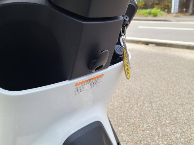 ■動力源のリチウムイオンバッテリーは簡単に着脱可能。自宅で充電可能です。0%から満充電まで約6時間(20%から満充電まで約3時間)・航続距離が約53kmと日常使いにぴったり