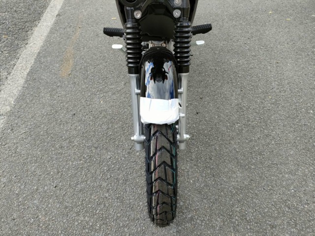 タフなイメージを強調する太めの17インチセミブロックタイヤ