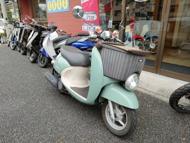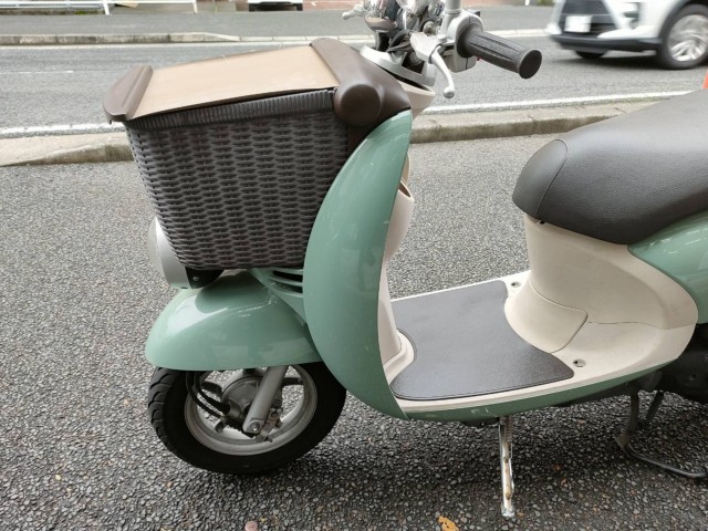 ■おしゃれで人気のビーノの派生モデルです。「前カゴ」付きのスタイルの通り使い勝手も良い仕様。フロントバスケットには巻取り式のシャッター(荷物の飛び出し防止のため)つき、エンジンはインジェクションで燃費や始動性能も向上しています
