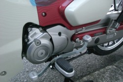 ペダルを踏むだけで変速できるスーパーカブ独自の自動遠心クラッチ&4段リターン式変速。心地いい走りののスーパーカブC125を展示販売しております。