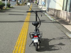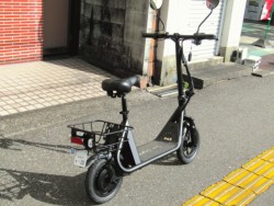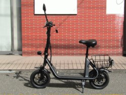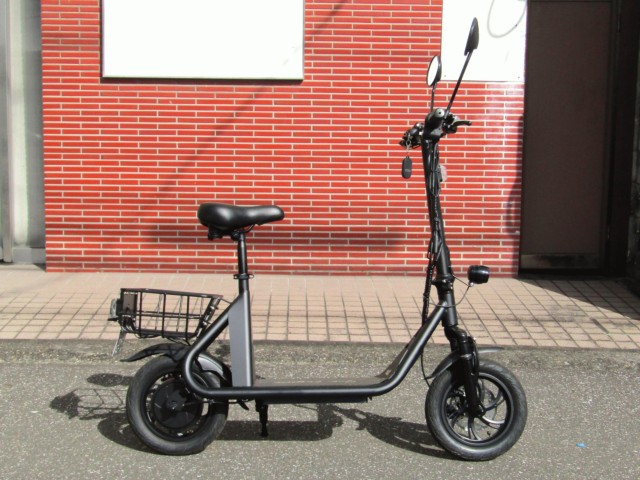免許不要な特定小型原付の電動バイク。電動キックボードにはない買い物カゴやサドル、12インチタイヤが装備されています。100Vの家庭用コンセントで充電でき、車検も不用なのでコスパが魅力です。