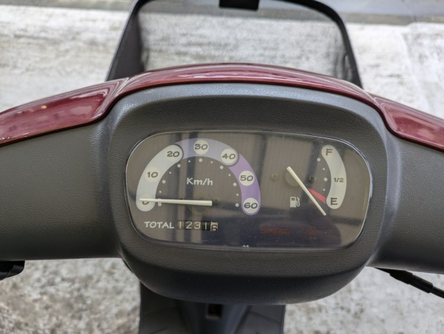 現メーター距離1231km、サイドスタンド付、ワンオーナー、前タイヤ・グリップ新品、シート張替済 |