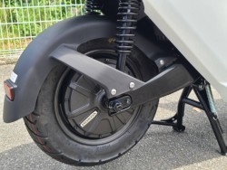 ■動力源のリチウムイオンバッテリーは簡単に着脱可能。自宅で充電可能です。0%から満充電まで約6時間(20%から満充電まで約3時間)・航続距離が約53kmと日常使いにぴったり