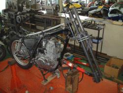 マイペースでメカ好きの店長がお待ちしてます。林道ツーリング派の方もどうぞ。市内三名町にて24年間ご愛顧頂いた後、緑あふれる香川町大野で引き続き営業させて頂いております。中古車の販売をメインで行っています。また、県内では唯一の(?)フレーム修正機を完備し、一般ユーザー様・業者様を問わずフレーム等の修正修理をお受けしています。