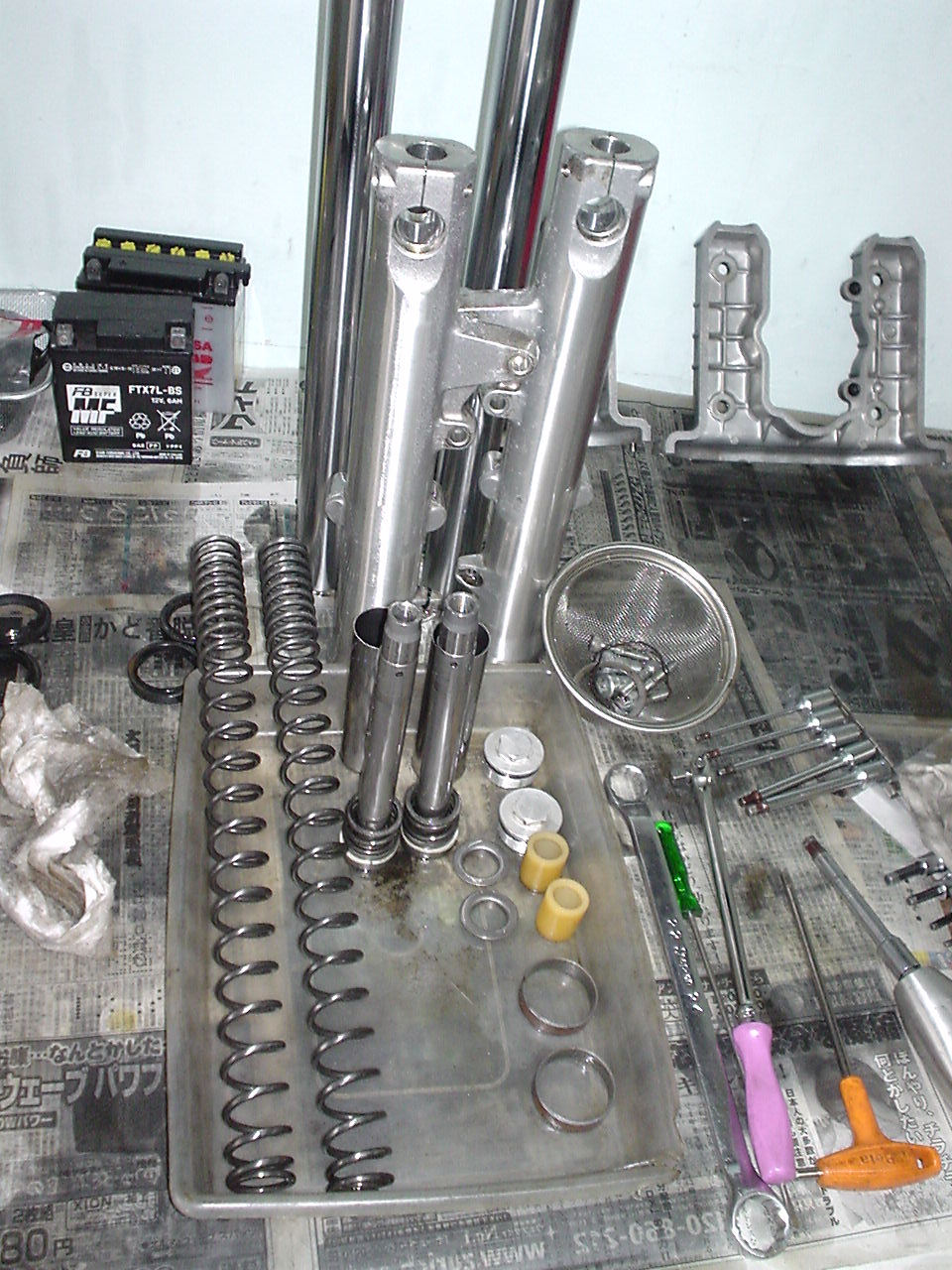最近特にお客様からのご依頼が多いのが、メーカーディーラーから新車を納車後その足で当店へお越しいただき新車の整備点検が圧倒的に増えております。ディーラーでも十分な点検を実施している事と思われますが、お客様の安全にかかわる部分の点検調整漏れも多数見受けられております。新車だから完璧な状態と言うのは勝手な思い込みでは無いかと思われます。お客様自身で一度疑問を持って自分のオートバイに乗車してみて下さい。このコメントを読まれたお客様の中で、新車を大型店舗で購入したが、不安や不満、疑問を感じている。また自分ではこの状態が良いのか悪いのか分からない、不満があるがお店で聞いてもこんなものですとしか答えてもらえない等...。そんな事を感じておられる方は是非一度当店へ遊びにきてみて下さい。当店は車両販売目的のみのお店ではありませんので