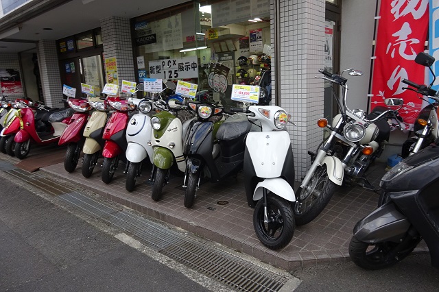親切・丁寧!あなたのバイクライフにお応えします。松山城北地区にあり、松山大学より西へ300mに位置しています。スクーターを主に、ホンダ・ヤマハ・スズキの製品の販売、修理を行っている店です。中古車納車時にはエンジンオイルを新品交換しております。その他消耗品は当店基準で交換いたします。納車時の点検整備もバッチリです。メカニック3人とも国家整備士資格を持っており、親切・丁寧をモットーにしております。ぜひ当店にお越し下さい。