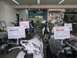 ※「現金支払総額」は現金販売価格に加えて、検査登録手続き代行の費用、保険料、税金(消費税を除く)、自賠責保険など、バイクを購入して乗れるようにするために必要な諸費用が含まれています。但し、販売店のある管轄の運輸支局以外で登録する場合や、購入者の指定場所へ陸送納車したり、遠方納車時など、販売条件によっては追加費用が必要な場合があるので、販売店に必ず事前に確認して下さい。