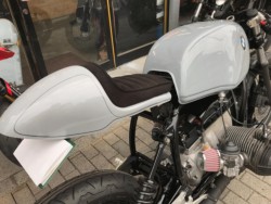 BMW R100RS セミレストア車。カスタムベース車にも最適です。新品パーツを多数使用して一通り綺麗に仕上げています。ホイール前後、フレーム(不要なステーを切断してスムージング)、フロントフォーク、スイングアーム、デフケース、エンジンカバー、ブレーキローターインナー、ほか小物パーツなどパウダーコート、セラコート、ウレタン塗装で仕上げました。フロントサスペンションはローダウン、OH。エンジンはタペット調整、ミッション、クラッチ、クラッチレリーズ、デフ、スイングアーム類の整備、シール交換。発電系の整備済み。小型リチウムバッテリー、レギュレーター、リレー類交換。キャブレターOH、社外エアクリーナー、セッティング。ブレーキマスターOH、社外ホースに交換、ブレーキキャリパーOH。社外セパハンに交換、モトガジェットバーエンドウインカー、小型ヘッドライト、ライトステー交換。社外バックステップに交換、タイヤ前後ハイグリップバイアスK300GPに交換などカスタム多数。 社外マフラー、シングルシートカウル(アルカンターラシート)と専用ワンオフシートレール、モトガジェット小型メーターに交換。