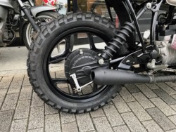 全体的にレストアをしながら、新品パーツ多数でカスタムしています。ホイールはパウダーコート、フレーム・スイングアーム・ステム周り・エンジンカバー・タンクなどウレタン塗装、フォークボトムケース・リヤギヤボックスなどセラコート、全体的に綺麗にしてます。タイヤ、ワイヤー、ブレーキホースなど他消耗品多数交換済み。タイヤはスクランブラーの雰囲気重視で舗装路走行可能なブロックタイヤに交換