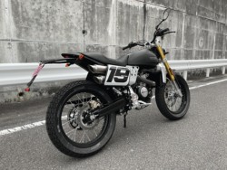 ファンティックの新シリーズ、CABALLEROのフラットトラック。前後19インチのホイールを採用し、リアルなフラットトラックレーサースタイルを追求した「ホンモノ」の1台。