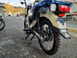 ■新色はアースカラーをイメージしたような落ち着いたトーンが特徴的です。また法規対応のためのマフラー変更とミラー変更し、従来よりタフなイメージを強調したモデルに仕上げられています