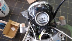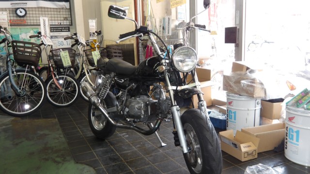 ボアアップ、ビッグキャブレター、武川スイングアーム、フロントホーク、武川マフラー、前ブレーキなどカスタムあります。ノーマル部品は、ありません。季節、地域などでセッティング必要な場合あります。タンク小エクボ、塗装にひび割れあります。走行中前には、カスタム車なのでゆるみ、漏れ、量、など点検が特に必要です。50cc原付免許では乗れません。フロントホーク、マスターシリンダー、キャリパーは、NSR50用と思います。武川10インチ合わせホイールチューブ仕様。