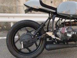 BMW R100RS セミレストア車。カスタムベース車にも最適です。新品パーツを多数使用して一通り綺麗に仕上げています。ホイール前後、フレーム(不要なステーを切断してスムージング)、フロントフォーク、スイングアーム、デフケース、エンジンカバー、ブレーキローターインナー、ほか小物パーツなどパウダーコート、セラコート、ウレタン塗装で仕上げました。フロントサスペンションはローダウン、OH。エンジンはタペット調整、ミッション、クラッチ、クラッチレリーズ、デフ、スイングアーム類の整備、シール交換。発電系の整備済み。小型リチウムバッテリー、レギュレーター、リレー類交換。キャブレターOH、社外エアクリーナー、セッティング。ブレーキマスターOH、社外ホースに交換、ブレーキキャリパーOH。社外セパハンに交換、モトガジェットバーエンドウインカー、小型ヘッドライト、ライトステー交換。社外バックステップに交換、タイヤ前後ハイグリップバイアスK300GPに交換などカスタム多数。 社外マフラー、シングルシートカウル(アルカンターラシート)と専用ワンオフシートレール、モトガジェット小型メーターに交換。