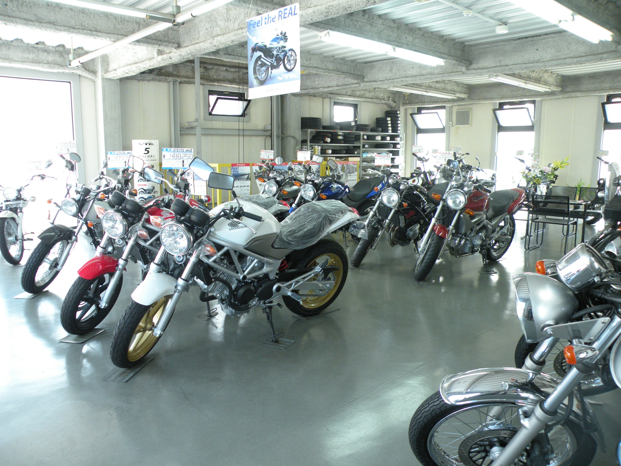 お店は松山市平和通り沿い。光が差し込む明るい店内でゆっくりとバイクをお探し下さい