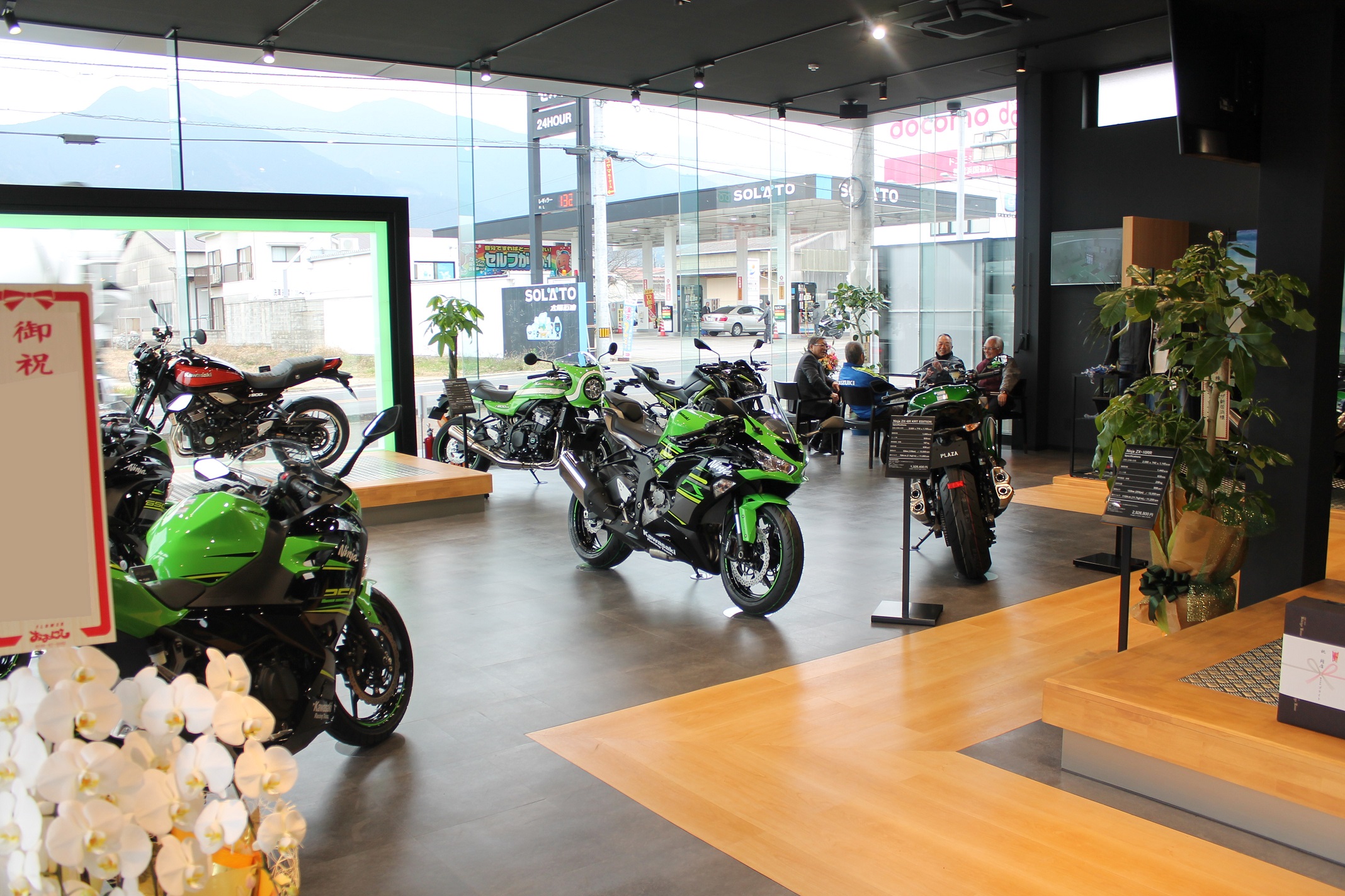 愛媛県に四国で初めてのカワサキプラザがオープンします。 ショールームでは話題のニューモデルはもちろん、プラザオリジナルアパレルもご用意しています。 店内には女性スタッフが常駐していますので、女性のお客様・初心者の方、お気軽にご来店ください。 また愛車の点検・整備を安心して預けていただける設備、納車専用スペース完備により、 お客様のモーターサイクルライフが特別なものになるよう努めてまいります。 モーターサイクルライフをより豊かなものにするためにツーリングなどのイベントを毎月開催しており、 お客様のモーターサイクルライフをサポートさせていただきます。