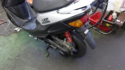 サイドスタンド、ポッシュCDI、ディトナリヤショック、ディトナハイスピードプーリー装着。リヤショックは純正より多少長いです。ノーマル部品は、ありません。年式が古いので純正部品など、販売終了もあります。2サイクルのオイル汚れあります。カバー類は、ヤマハ純正品と思います。